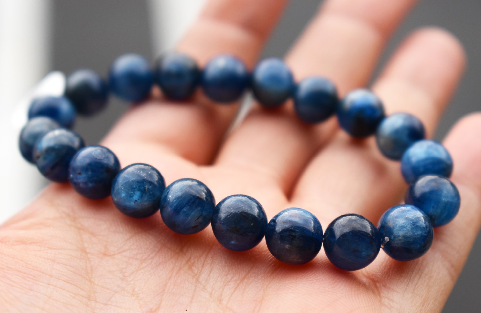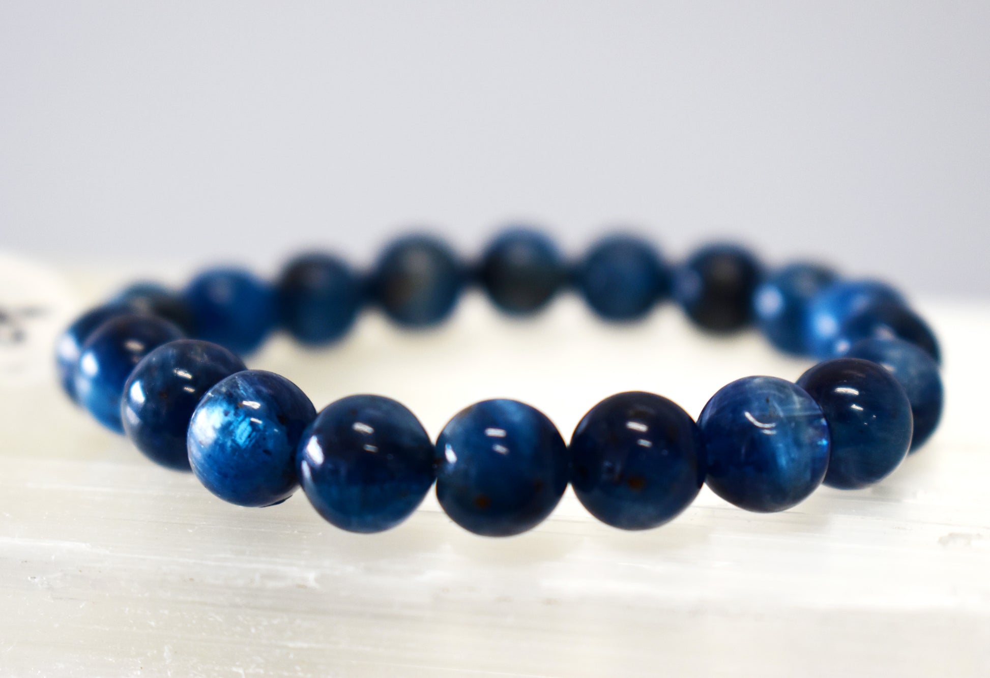 8mm Blue Kyanite beaded bracelet with two wrist sizes: 6.5 inch