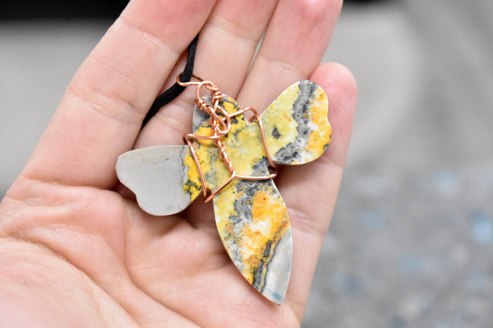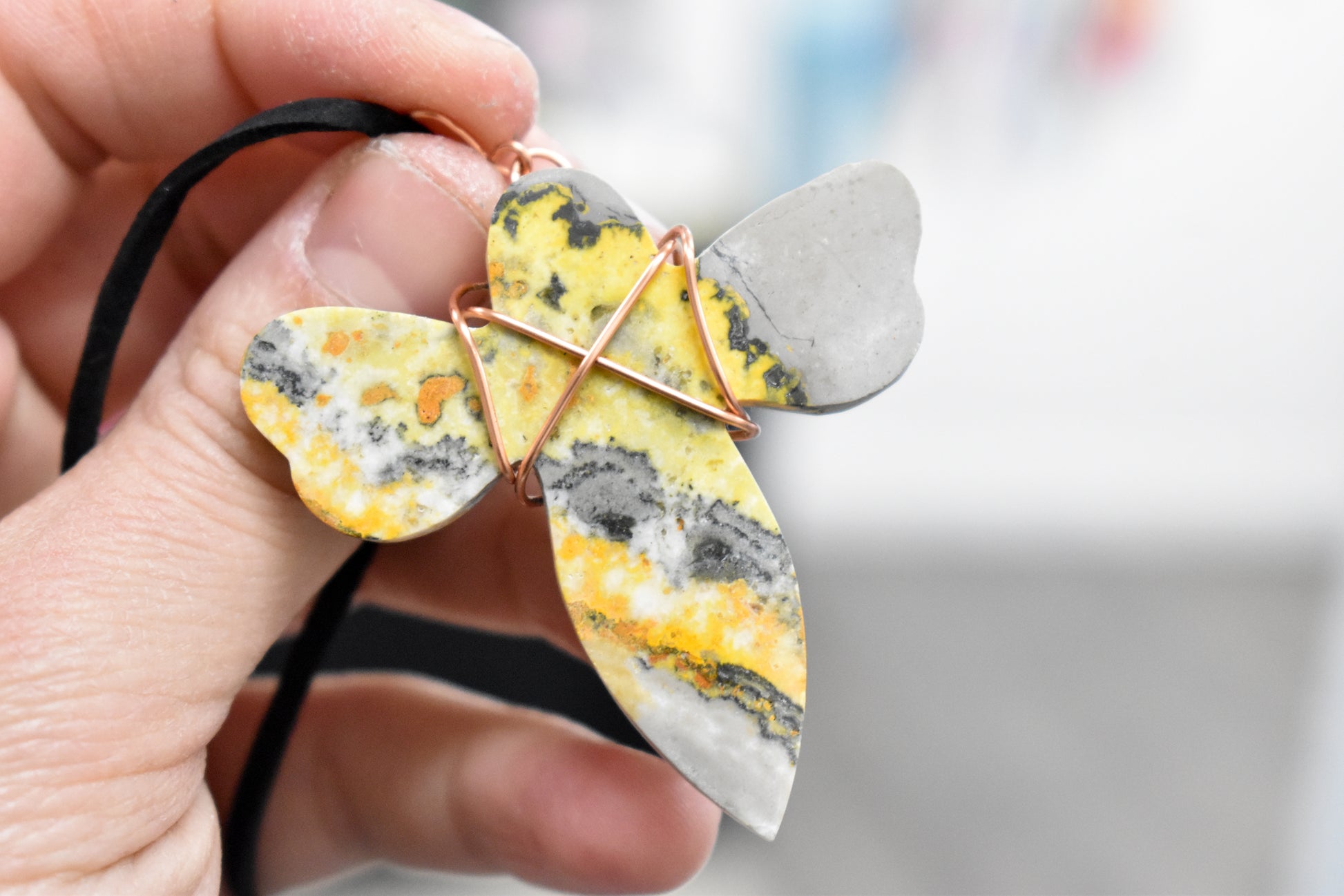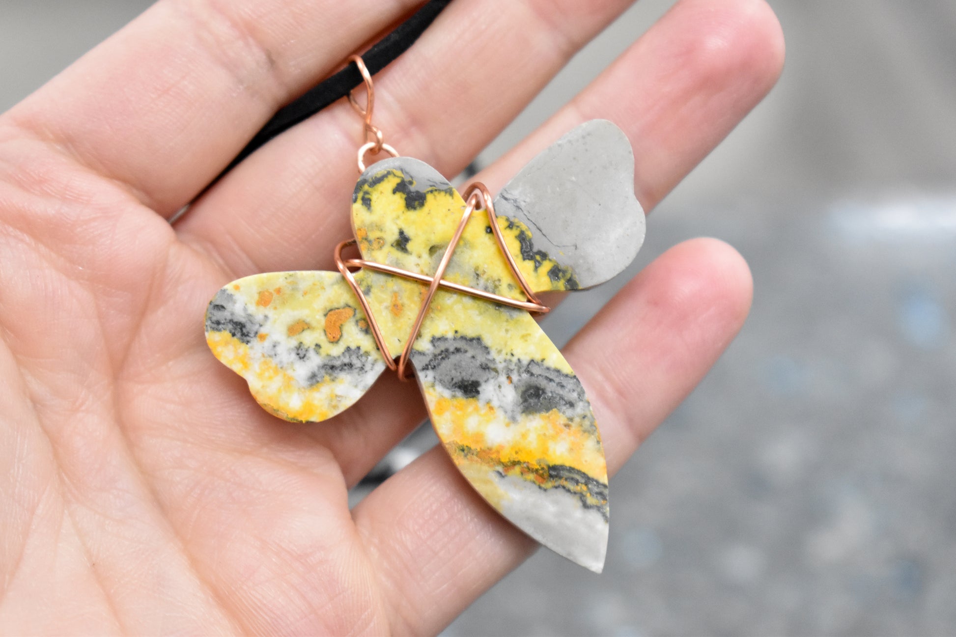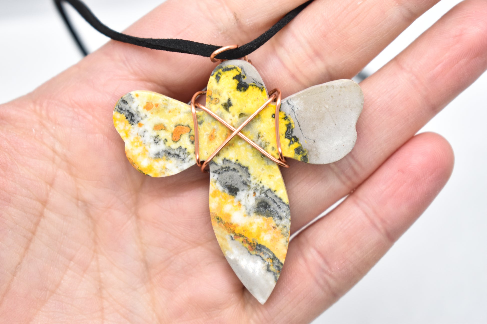 Copper Wrapped Bumble Bee Jasper with adjustable rope