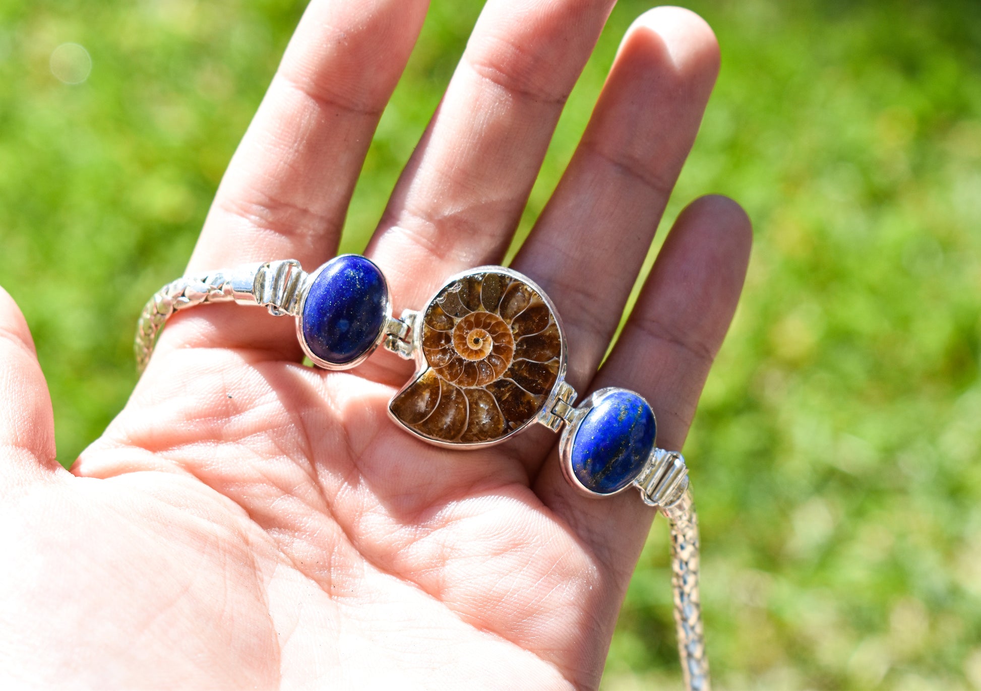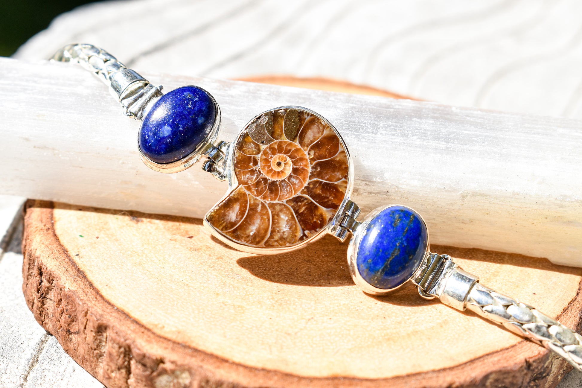 Approximately 8 inch Sterling Silver Lapis Lazuli Bracelet with Ammonite.