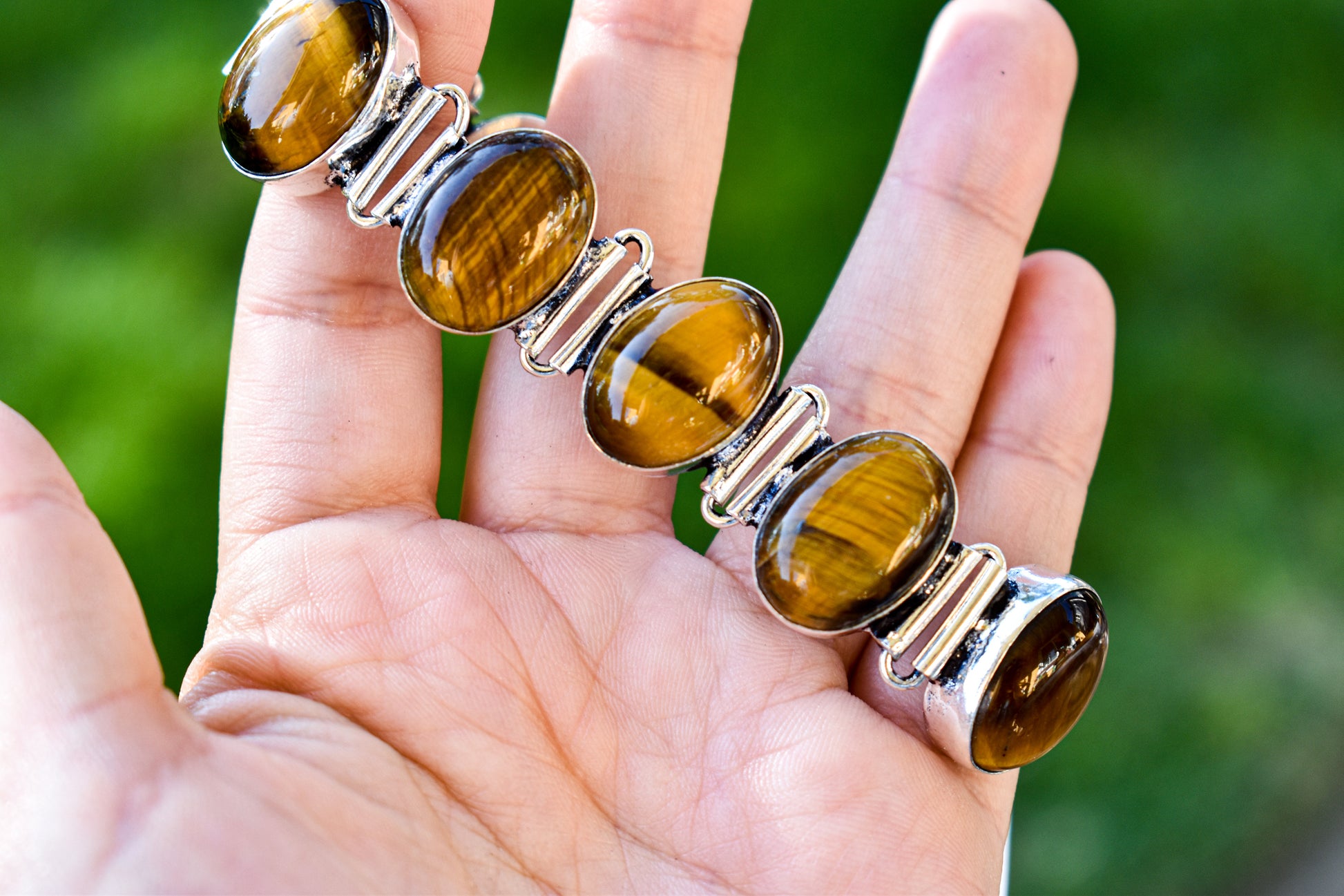 Sterling Silver Tigers Eye Bracelet measuring approximately 7 inches in wrist